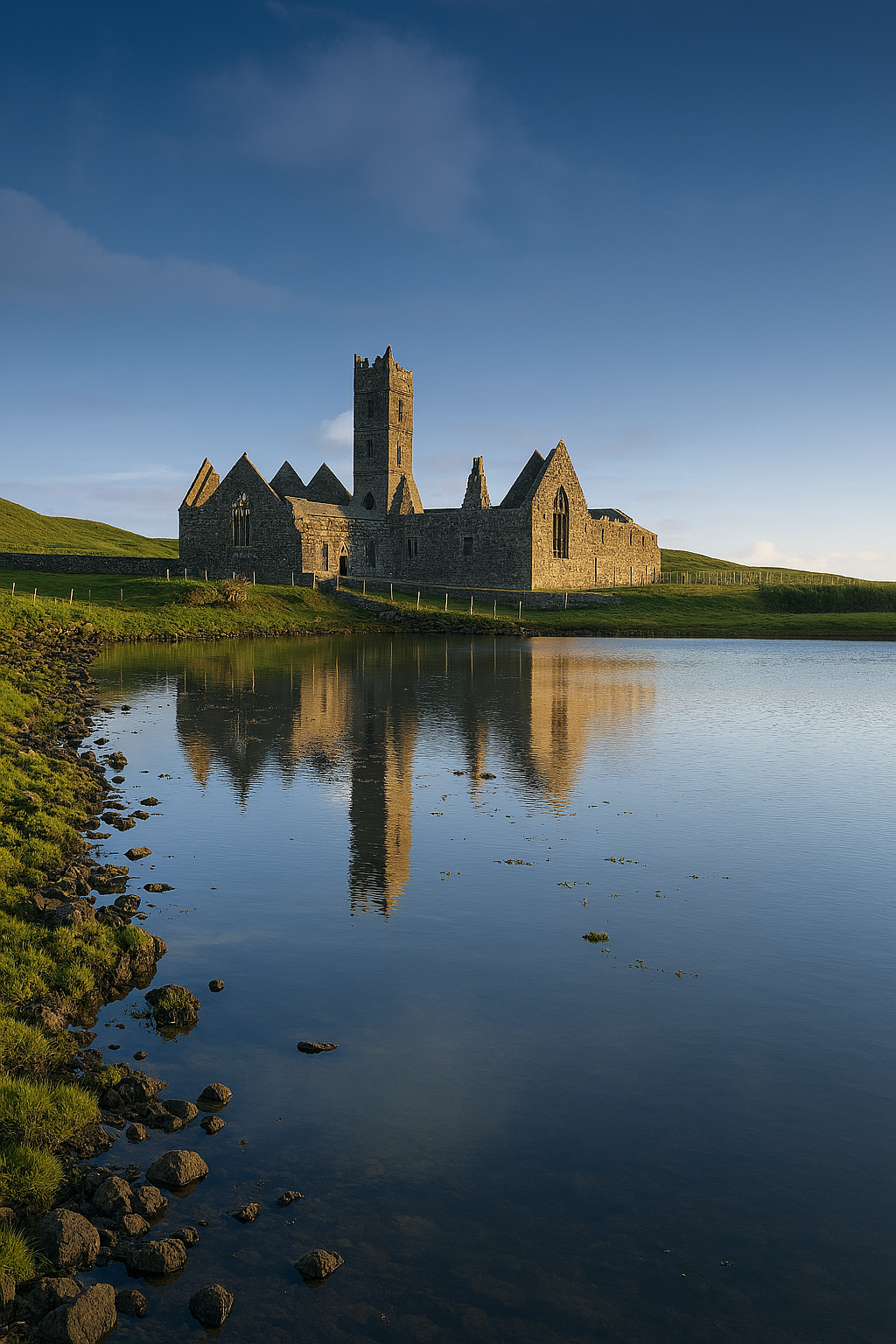 The ruins of the Franciscan friary of Rosserk are located on the western bank of the Moy estuary. The monastery was destroyed in a fire in 1590, only 150 years after being built. Especially remarkable are the west gate of the monastery and the double piscina.